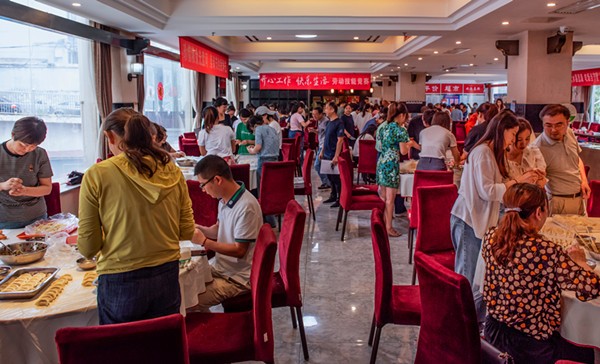 清水飘芙蓉,元宝落玉盘。热气腾腾的饺子端上正在加班同志的办公桌,大家一起品尝着自己的劳动成果,并通过微信群分享喜悦。区政府办分会的曾慧说:“今天的活动是职工喜闻乐见的文体活动,让大家感受到了单位的温暖。”