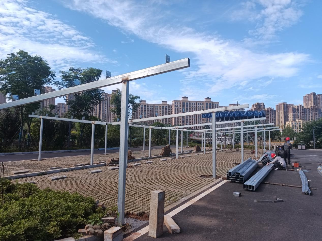本次停车场光伏项目将新建光伏停车棚四处,共计1076平方米,总装机容量244.2KWP,建成后预计年发电量23.18万度。同时,还将新建6个30KV充电桩,预计7月底可完成项目建设。