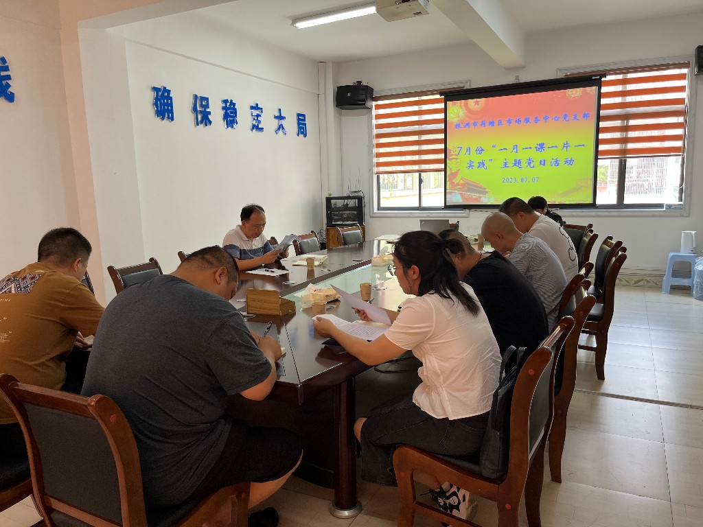 7月7日下午,荷塘区市场服务中心党支部在三楼会议室召开7月份“一月一课一片一实践”支部主题党日学习活动暨党员大会,活动由支部书记胡嵩主持,支部全体党员参加。