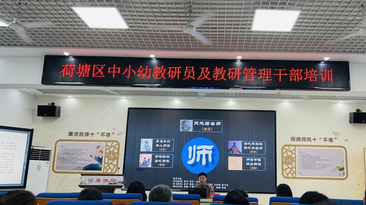 教育质量在教师,教师水平在教研,7月5日,荷塘区召开中小幼教研员及教研管理干部培训,推动作风建设年活动走深走实,整体推进干部能力提升和教育教学质量提升。区教育局党委书记、局长周波,局党委副书记、副局长潘书巧出席。区教育教学研究指导中心主任吴健主持。