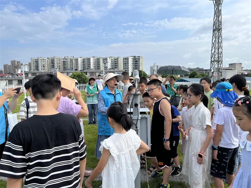 孩子们分组有序参观了气象观测站、气象台。气象科普志愿者耐心地讲解气象仪器数据观测、采集知识,同学们认真观察,不时提问,通过现场观摩,这些陌生的气象科技在孩子们眼中更加生动立体。