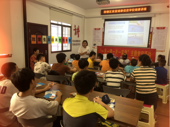 正值暑假炎热期,为扎实有效的开展防溺水安全教育宣传工作。7月26日,株洲市荷塘区计生协家庭健康促进学校走进月塘街道野鸭冲社区开展《儿童防溺水教育》知识讲座,由株洲市三医院急诊科副主任医师贺慧授课,辖区学生积极参加。