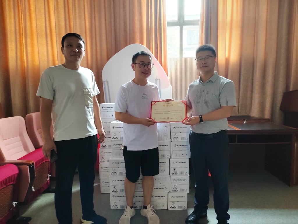 市特殊教育学校后勤主任胡兆龙为爱心企业家颁发捐赠赠书
