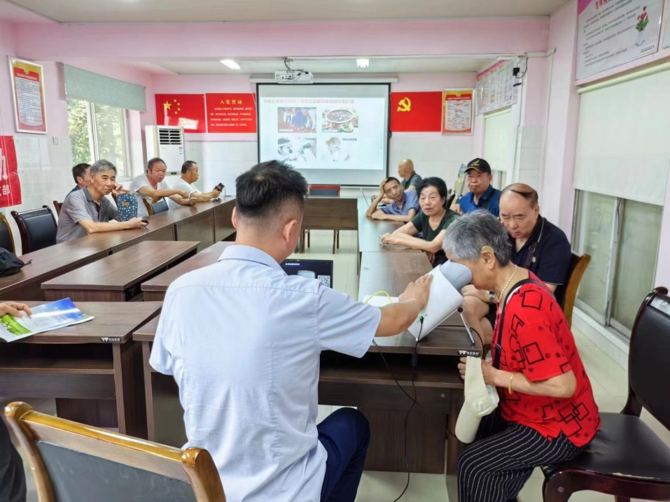 为促进全生命周期眼健康知识和理念的普及,加强社区居民对眼健康的关注,营造健康生活的氛围,8月8日上午,金山街道社区卫生服务中心联合株洲市三三一爱尔眼科医院共同开展“关爱眼部健康”——公益眼健康科普讲座+体检活动,免费为居民提供眼部健康检查、普及爱眼护眼知识。
