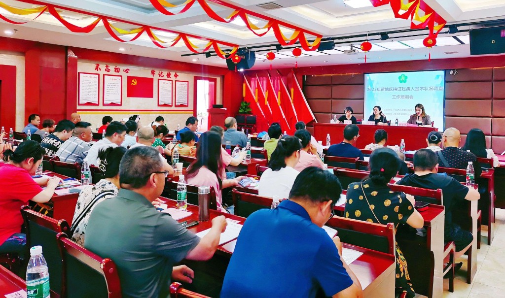 为扎实做好荷塘区2023年持证残疾人基本状况调查工作,认真落实好全市残联系统倡议的“遇见”助残活动,更好为残疾人开展各项精准服务,8月24日,荷塘区残联在市盛康职业技术培训学校举办2023年持证残疾人基本状况调查业务培训会暨“遇见”活动启动仪式。荷塘区残联全体党员干部,区各镇(街)残联理事长、村(社区)残协专职委员、助残机构负责人、志愿者等近85人参加培训与启动仪式。