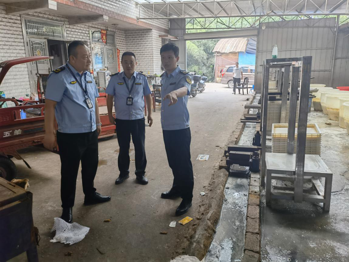 检查中,发现一家无名豆制品作坊,该豆制品作坊环保设施简陋,厂区内味道比较刺鼻,检查人员找到企业负责人进行沟通,帮扶其找到适合生产的厂房,要求企业安装生态环保相关设施,并指导企业办理相关手续。