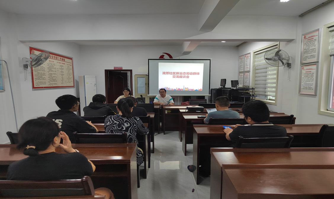 流芳社区坚持"阵地共享"和"一室多用"原则,依托社区党群服务中心设立"同心驿站",向外卖配送员、快递员等新阶层人士提供歇脚如厕、饮水充电、避暑取暖等服务,累计服务新阶层人士100余人次,帮助解决"停车难""充电难""吃饭难"等问题。同时,定期召开交流座谈会,及时了解新阶层人士的思想动态、生活现状和实际诉求,让新阶层人士在外工作也有"温暖港湾"。