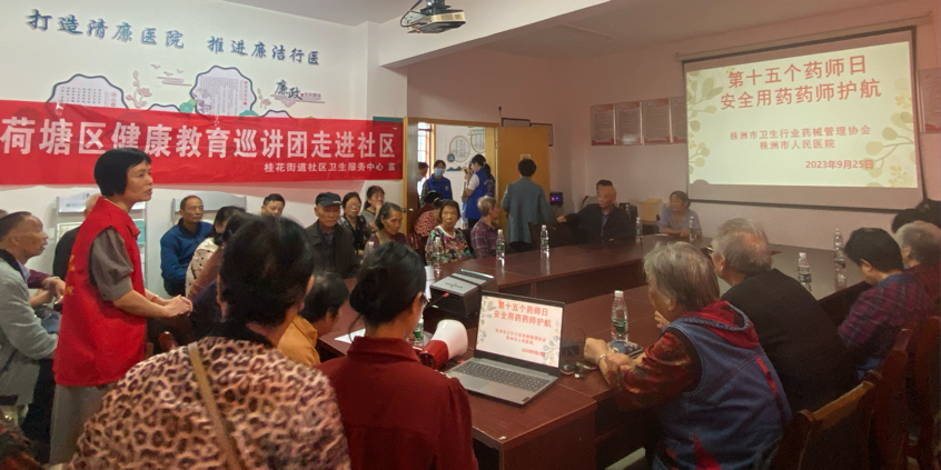 为了提高居民对药品的认知和健康合理用药的意识,9月23日,桂花街道社区卫生服务中心联合株洲市人民医院药学专家在桂花中心健教室开展了一场以安全、合理用药为主题的科普讲座。