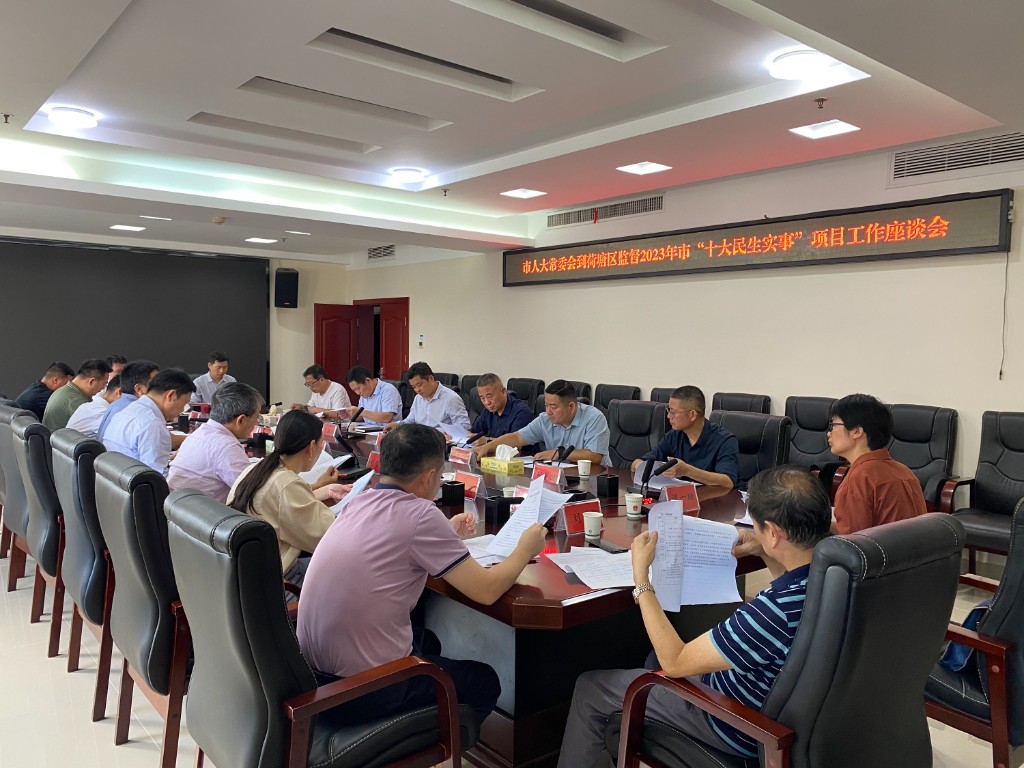 会上,荷塘区人民政府党组成员、副区长王昆汇报了荷塘区市“十大民生实事”项目实施情况。荷塘区人民政府区委副书记、区长罗鹏程介绍了我区“小切口,大民生”的做法。随后,与会的市、区两级人大代表及民生实事责任单位进行了座谈交流。