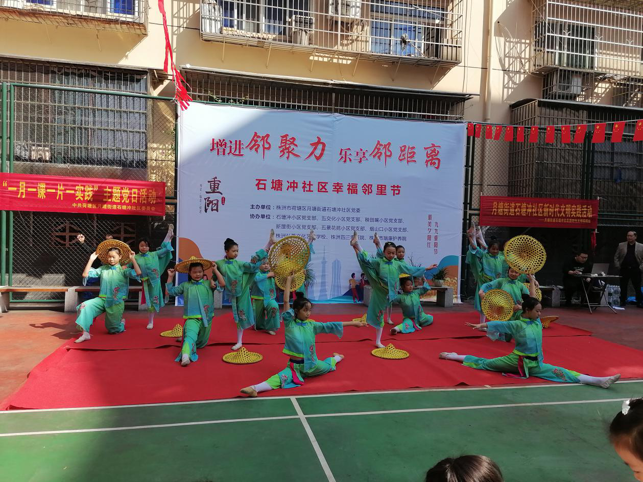 华美歌舞“邻”里乐。21日上午,在袁家湾社区“第三届”幸福邻里节主会场,现场人头攒动,温馨惬意,动感的音乐,少儿爵士、健身操、舞蹈、合唱等节目连番上演,使得邻里节活动“开场即高潮”,画出了邻里节最绚烂的图案。各分会场,水竹社区株洲湘骏文武学校的集体武术表演、东环社区充满爱与感动的手势舞《感恩的心》、野鸭冲社区节奏欢快、鼓声有力的鼓乐《丽江三部曲》、学院社区蓝海卧龙湾小区广场舞队表演的《大中国》、石塘冲社区秧田嘴小区年逾七十的肖姨和陈叔表演的“过河”……一个个的节目全来自于居民自导自演,赢得了现场观众阵阵热烈的掌声,呈现了一场场精彩绝伦的视听盛宴。