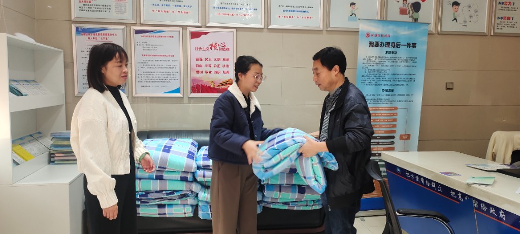 为自行前来领取人员发放棉被