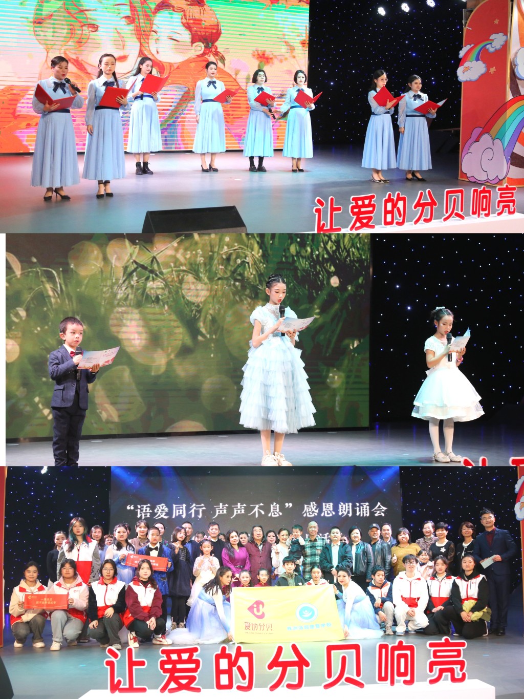 为进一步提高社会各界对特殊儿童的关心关爱,营造全社会友好友善、扶残助残的良好风尚,11月25日,在国际残疾人日到来之际,株洲市区残联携手语翔康复学校以及北京爱的分贝基金会等近十家爱心企业、文艺家、助残志愿者共同开展了一场主题为“语爱同行·声声不息”的感恩朗诵会暨助残扶残志愿者活动。株洲市残联兼职副理事长余志英、荷塘区残联党组书记、理事长蔡灵敏;市残联相关部门、各区残联负责人、知名文艺家、爱心企业、听障群体代表、助残志愿者和主流媒体记者等近100人参加了活动。