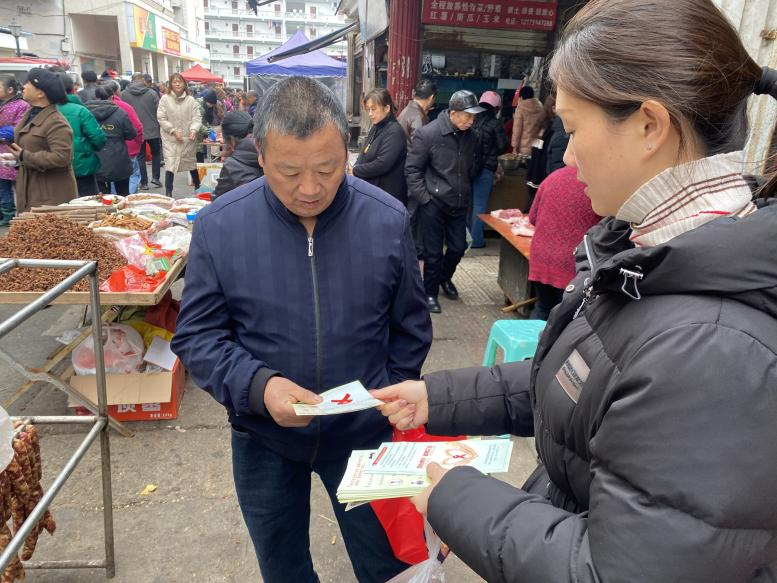 2023年12月1日是第36个“世界艾滋病日”,今年的主题是“凝聚社会力量·合力共抗艾滋”。为进一步提升辖区居民对艾滋病防治知识,提高广大群众艾滋病防治知识知晓率,12月1日宋家桥街道办事处联合社区卫生服务中心志愿者医疗团队,在430农贸市场开展世界艾滋病日宣传服务活动。