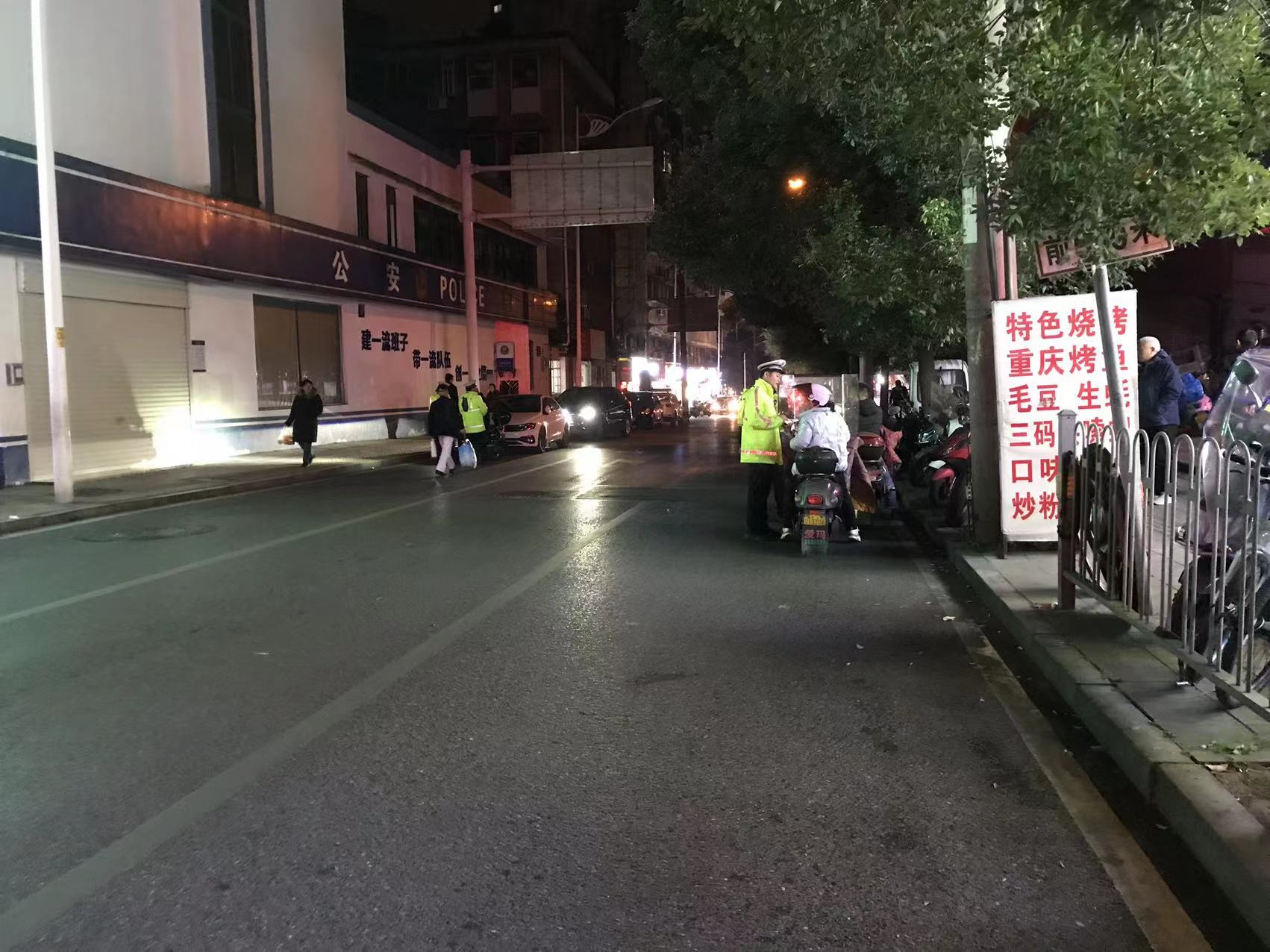 12月14日晚,金山派出所在新华东路与湘运路交叉路口开展执法行动,对多名未佩戴头盔的群众进行口头教育,并对周边商户车辆乱停乱放、随意占道等违法行为进行整治,进一步减轻交通安全管理压力,降低安全风险。
