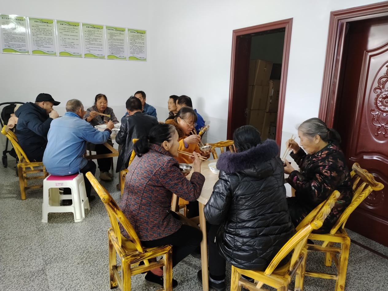 12月28日,临近午时,樟霞村的日间照料中心里内饭菜飘香,鸡蛋炒豆角,辣椒炒肉等等美味的菜肴装在大铁盆里,前来就餐的老人们依次排队打饭打菜,随后大家围坐在一起吃着热菜热饭,聊着家长里短,其乐融融。