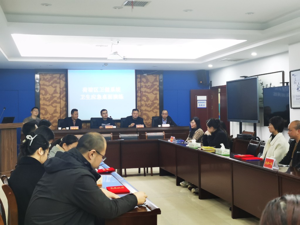 为应对各种突发公共卫生事件发生,有效提升我区卫生应急队伍实战能力,1月5日下午,荷塘区疾控中心(区卫监执法局)开展“荷塘区卫健系统卫生应急桌面演练”,市疾控中心副主任袁新健、监测科科长杨志勇为评委,区卫健局副局长兼疾控局局长黄海鹏、区疾控中心(区卫监执法局)主任谭爱平出席。