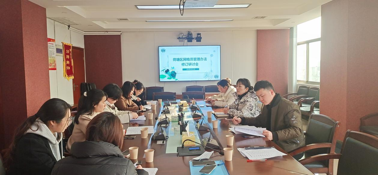 1月12日上午,荷塘区网格化中心组织召开网格员管理办法修订研讨会。区网格化中心相关负责人,区指挥中心、各镇(街道)分中心专职网格员参会。