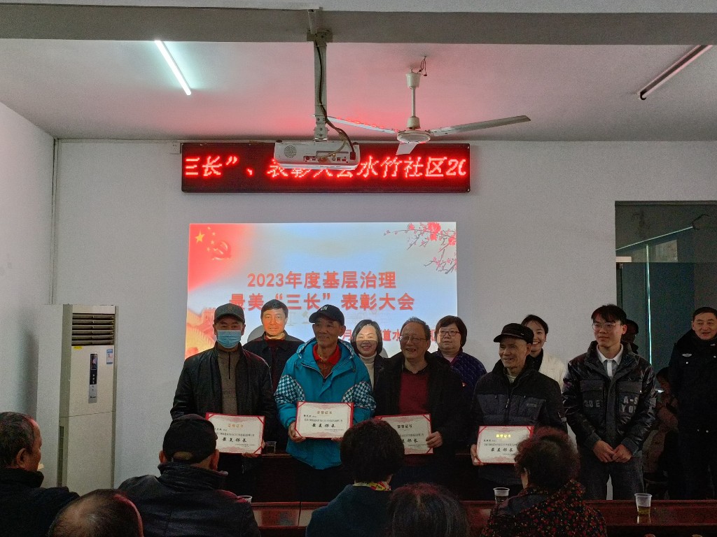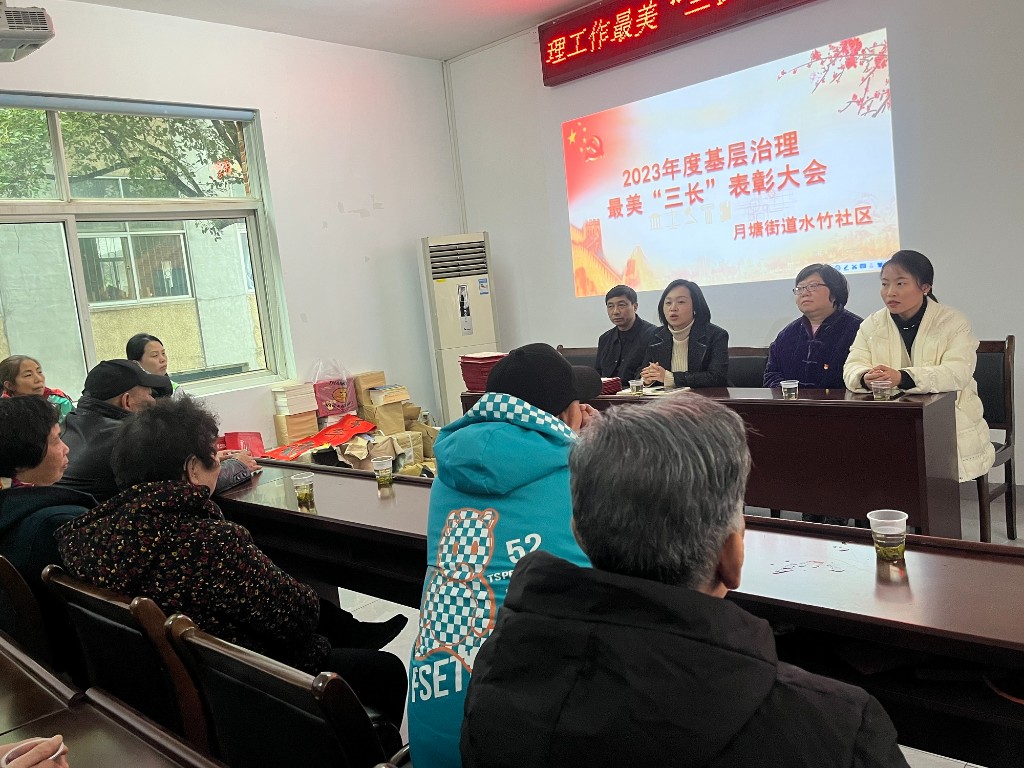 为表彰先锋事迹,树立模范典型,引领志愿新风,1月17日,月塘街道水竹社区召开2023年度最美“三长”表彰大会。荷塘区政协副主席张苏龙、驻各小区工作队书记及队员,月塘街道党工委委员、组织委员王妮娜参加此次会议。