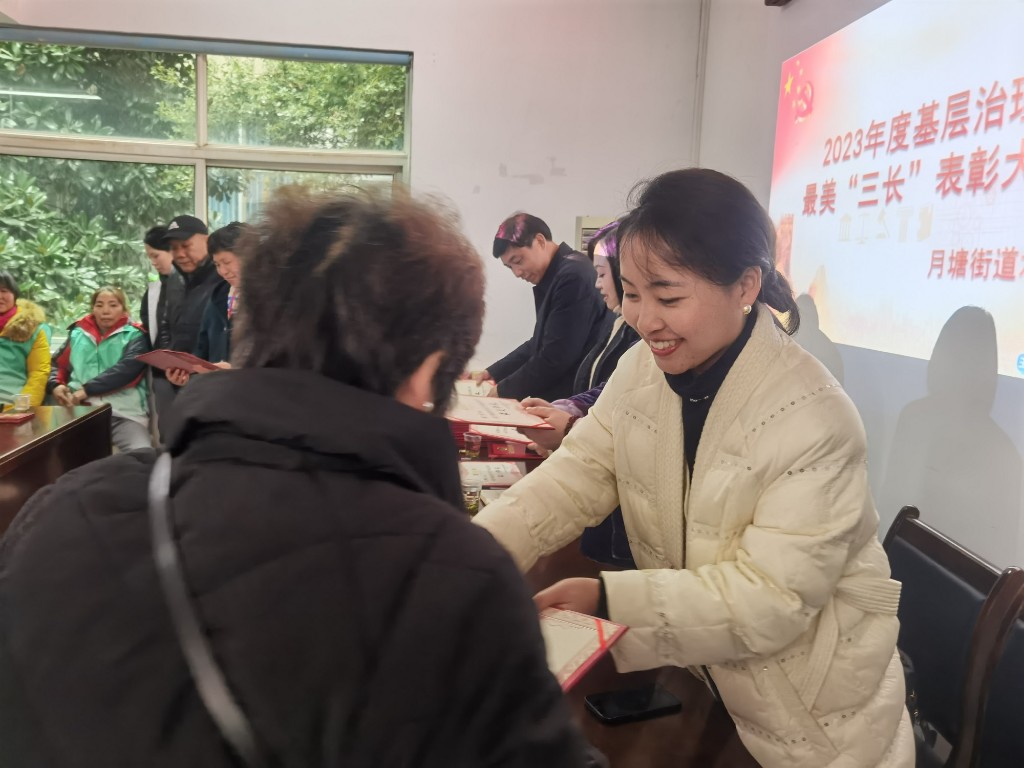 社区前期通过线下走访、邻里互荐等形式,广泛征集意见,最终评选出38位“最美邻长”、11位“最美组长”。会上,社区党委书记张海燕首先感谢“三长”们在小区建设中发挥的积极作用,鼓励他们更好的发挥示范带头作用,把“三长制”工作做深做实。之后,为评选出的49位最美“三长”们颁发荣誉证书和奖品,对受表彰的“三长”表示祝贺。希望受到表彰的“三长”们继续努力,发挥不怕苦不怕累的精神,充分发挥好“来自群众、熟悉群众、服务群众”的优势,继续为社区治理贡献力量。