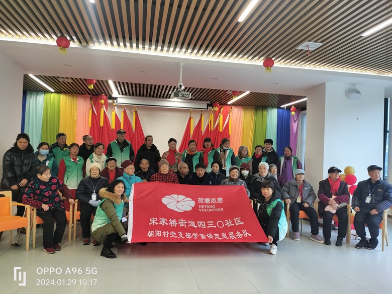 为了让敬老院的孤寡老人度过一个欢乐、祥和、喜庆的新春佳节,1月29日,宋家桥街道四三0社区朝阳村小区党支部邻里管家、学雷锋为民服务队走进阳光康养院,开展团结共聚迎“新春”贺“新年”慰问演出。