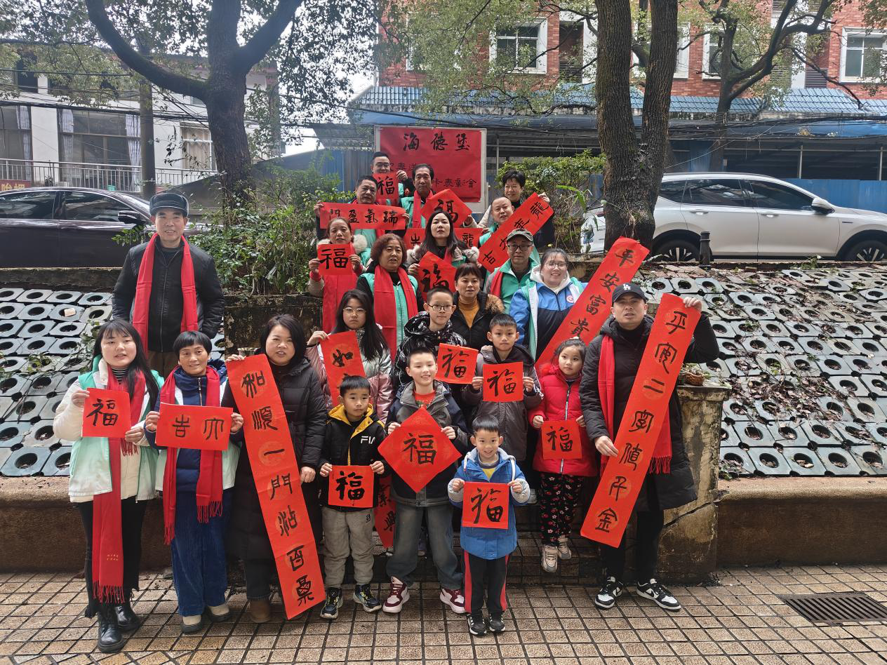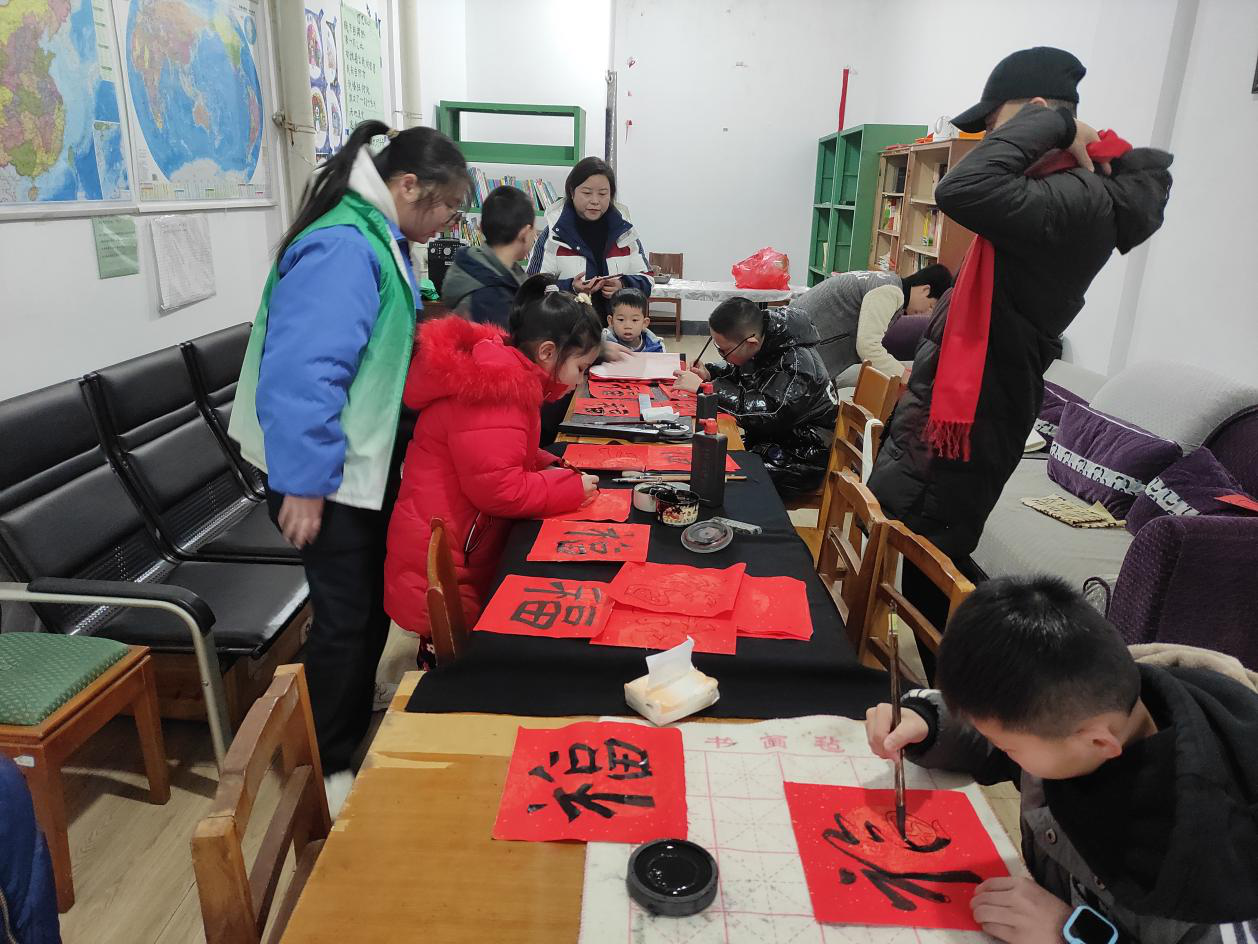 活动现场,首先邀请小区的书法大师挥毫泼墨为大家写下一幅幅精美的春联,“瑞气盈门”、“龙年大吉〞、“平安富贵”……吉祥的词句跃然纸上,带着浓烈的新年气息。随后带领着小朋友们共同写“福”字,每一笔、每一划都凝聚孩子们的用心和热情,在场的“三长”和志愿者耐心的手把手教孩子们写“福”,活动现场气氛热烈而温馨,最后志愿服务队队长邓菊萍为今年在爱心书屋阅读打卡表现优异的小朋友们发放表扬信和奖品,孩子们的阅读积极性得到提高,纷纷表示明年要拿第一。合影留念之际大家看着手里的春联和“福”字,个个喜笑颜开表示“这样的春联比外面买的更有意义”。