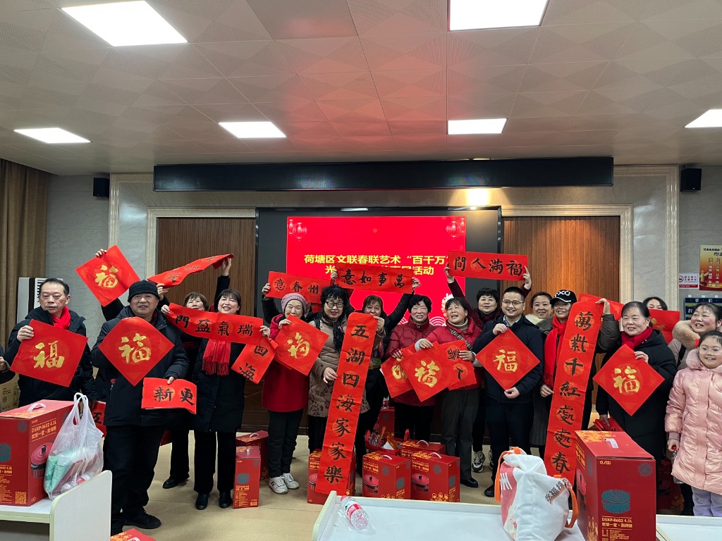 2月2日,在宋家桥街道月桂社区新时代文明实践站内,一场洋溢着新春喜庆氛围的活动拉开帷幕。由区委宣传部、区新时代文明实践中心主办,区文联、区文旅体局、宋家桥街道新时代文明实践所联合承办的荷塘区“强基工程”—文艺助力基层精神文明建设行动暨春联艺术“百千万”光大工程文艺惠民活动走进月桂社区新时代文明实践站,为社区的片长、组长、邻长、志愿者和居民朋友们送上手写春联和福字,送去春节前的暖心薄礼,纳新祈福。