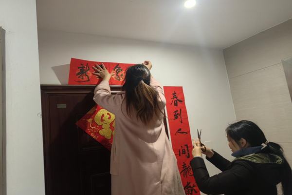 为了让独居老人感受到春节的热烈氛围,让独居老人心不孤单,2月7日上午,逸都花园“匠照邻”的志愿者为一期8栋五楼的姜维寅叔叔张贴了对联。志愿者们拿着书法爱好者写好的春联,来到姜维寅叔叔家门外。将对联贴好,并提前给他送祝福。姜维寅叔叔看到贴好的对联,立即感觉到年味浓浓,不停地感谢。