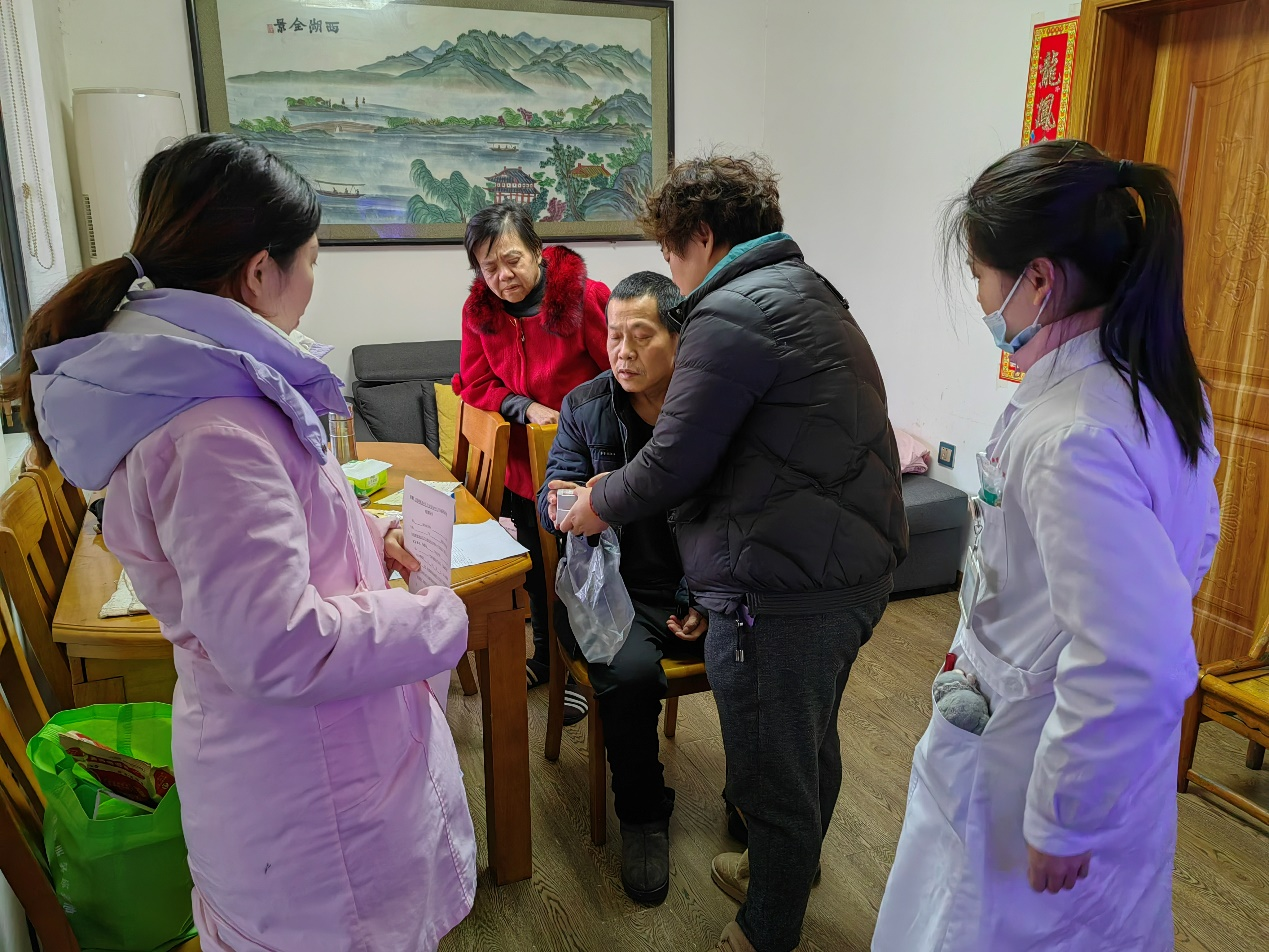 “谭叔叔,您有没有感觉哪里不舒服?” “我就是这两天感觉头有点晕。” “那您吃的是哪种降压药呢?”“药吃完了,没有去买,我腿痛,走不了,老婆又有癫痫而且耳朵也听不见,所以这几天没有吃药。”“您的血压是188/95mmhg,所以您会头晕。” 2月27日,茨菇塘街道社区卫生服务中心粟医生和家庭医生团队在上门随访时遇到了这种情况,了解到谭叔叔的用药情况后,粟医生立即带着他的身份证到单位帮他代购药品,并立即送到谭叔叔手中,当场指导他服下。同时,他们还耐心讲解了用药方法和注意事项,并留下了联系方式,告知如果下次没药了,提前打电话,会帮忙解决的。