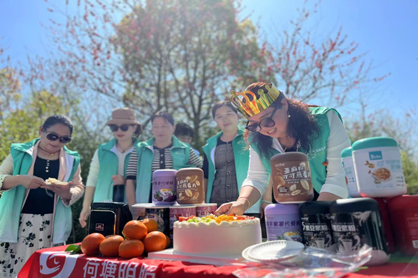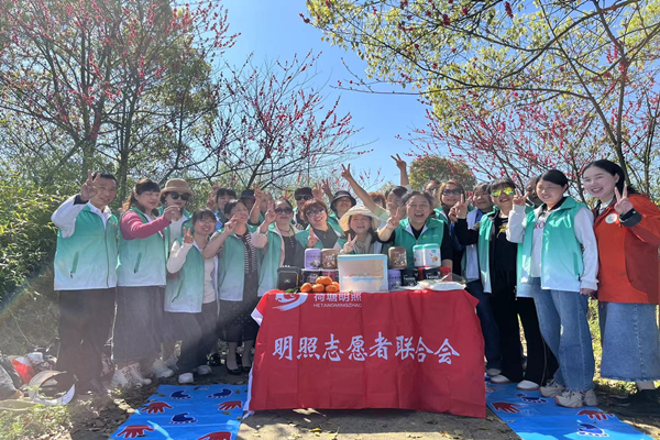 桃花林美丽景色仿佛一曲轻柔的乐章,那淡淡的香气和随风舞动的花瓣让人陶醉其中,志愿者们一起唱着生日歌,吹蜡烛,许下美好的愿望,所有人脸上绽放了幸福美丽的笑容;游戏环节中,志愿者们像孩子一样开心的笑着跳着。愉快的笑声点亮了林间的春天。
