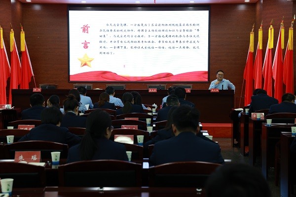 为进一步贯彻落实全国税务系统基层局长轮训示范培训班要求,凝心聚力抓好2024年度各项重点工作,4月12日,荷塘区税务局党委书记、局长杨文明以落实“三个一举措 谱写荷塘税收事业高质量发展新篇章”为题,讲授了一堂生动的专题党课,该局全体干部参加学习。