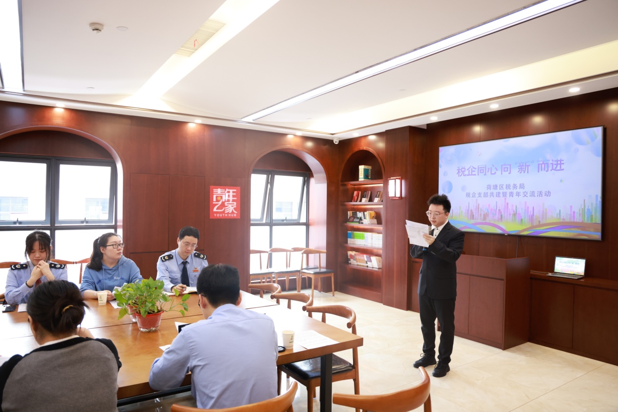 在世界读书日来临之际,活动为每位参会青年赠予一本税费政策辅导读本,让企业青年学习税收政策,让税务青年提升业务能力。活动最后,荷塘区税务局党委委员、副局长谭缔勉励青年朋友要迎难而上、在新形势下扛牢新使命,要创新突破、以新作为展现新风采,要增进沟通、用新交流共促新进步,合力推动高质量发展向"新"而进。