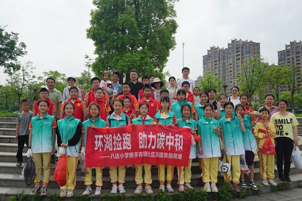 为推动生态环境宣传工作深入开展,不断增强辖区居民保护生态环境的意识,营造积极健康的公共生活环境,4月27日,明照街道青塘社区逸都花园一期小区党支部携手八达小学在明照湖开展“共建荷塘‘环湖捡跑 助力碳中和’”活动,此次活动,共计40余名志愿者参与其中。