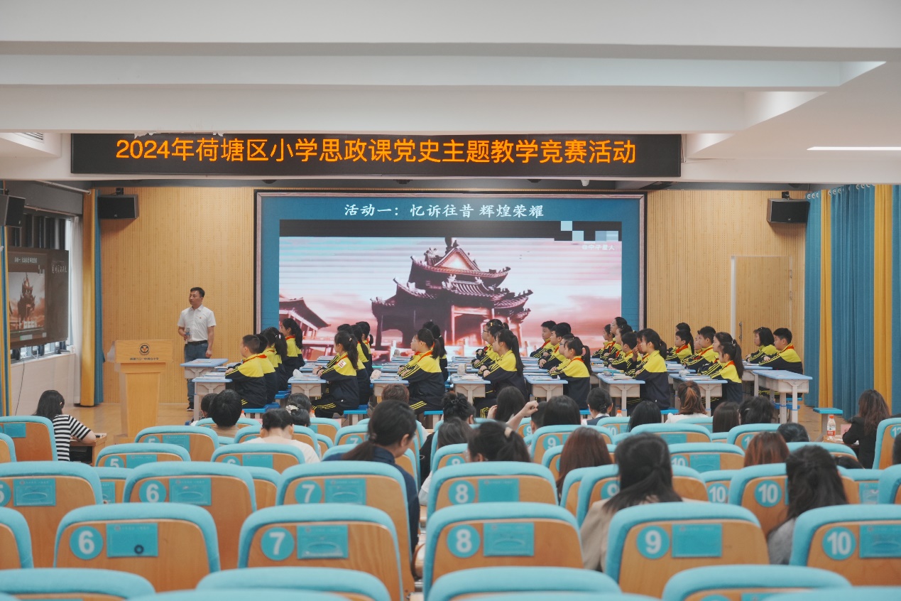 5月9日,2024年荷塘区小学思政课党史主题教学竞赛活动在株洲六〇一中英文小学隆重举行。荷塘区教育教学研究指导中心副主任赵腾达、荷塘区思政教研员易春红、各参赛校领导、全区小学思政骨干教师及专兼职教师代表与株洲六〇一中英文小学五年级学生近500人参与了此次活动。