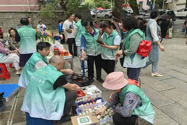 志愿者们早早设定售卖点、支起桌子、摆好蛋框,活动过程中,志愿者们为义卖奋力呐喊,各显神通。