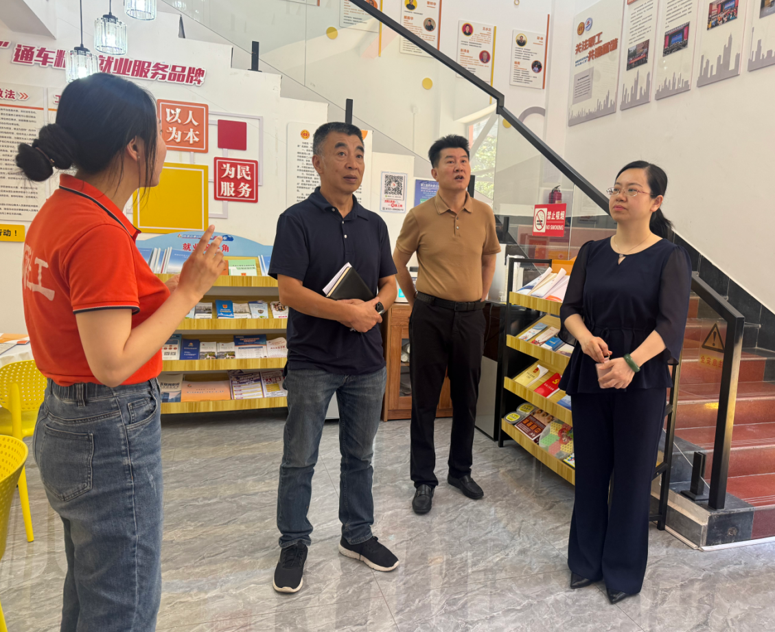5月14日,工人日报湖南站站长方大丰一行到荷塘区调研“暖‘新’驿站”新就业形态劳动者融合发展项目。