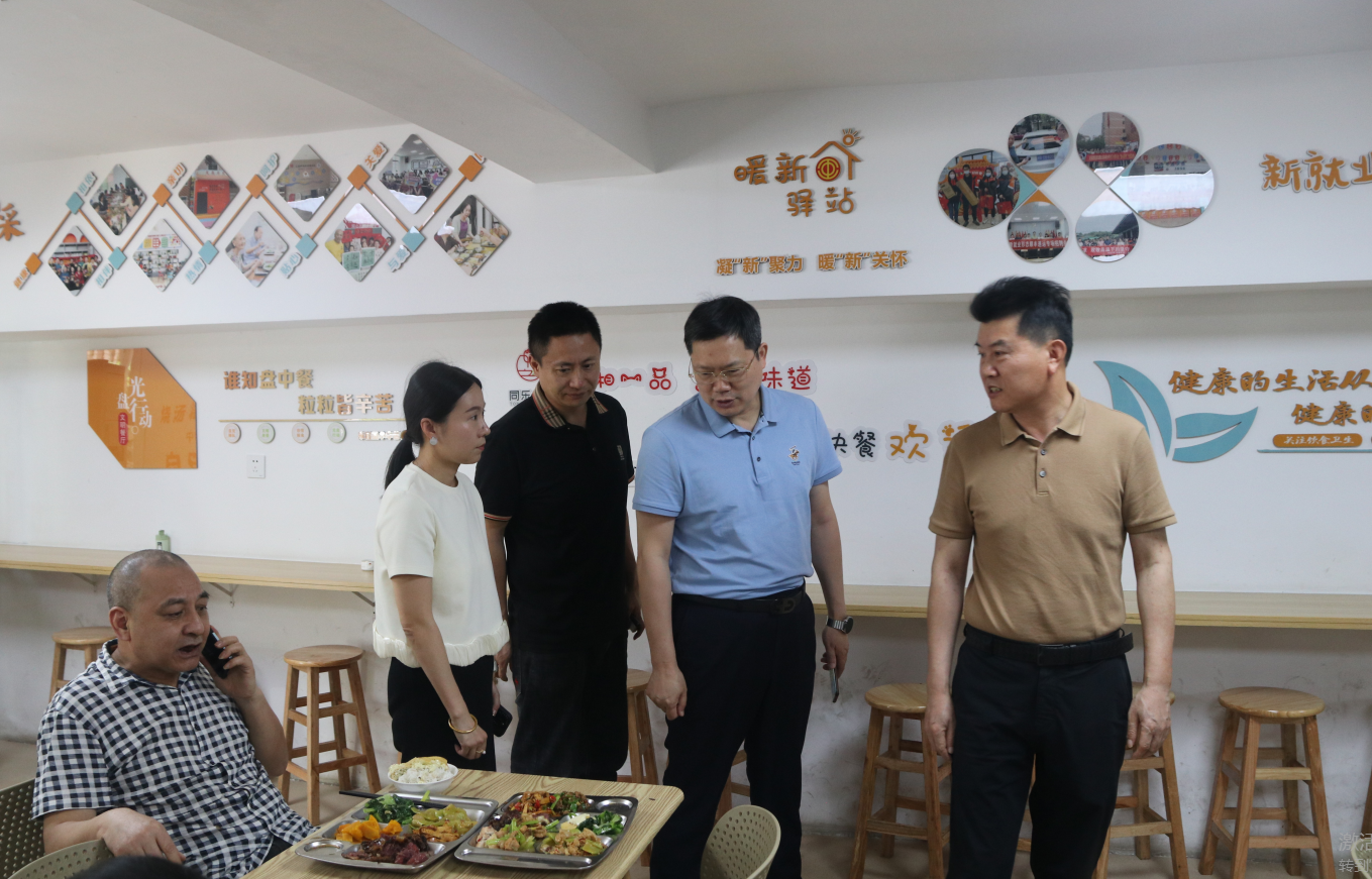 调研组一行首先来到了茨菇塘街道天鹅社区工会联合会、“同乐之星”新就业形态劳动者爱心食堂调研,详细了解了荷塘区“暖‘新’驿站”新就业形态劳动者融合发展项目的背景、目的、意义和相关工作推进情况。