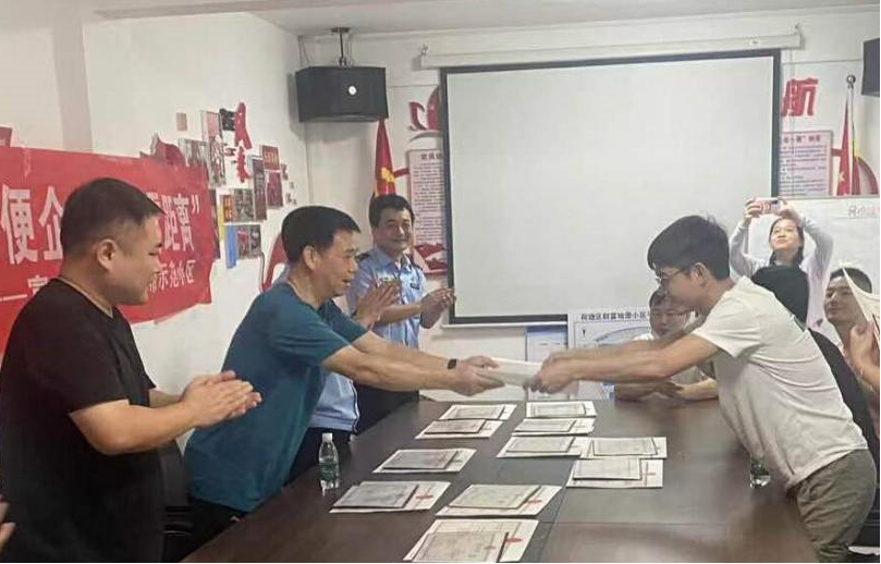 5月16日,月塘街道富家垅财富小区服装加工厂的经营户们终于拿到了期盼已久的营业执照。发证现场,经营户们纷纷表示感谢:“以前觉得办证复杂,不知道要准备什么资料,也没时间去办,你们这次真是帮我们解决了大麻烦,为你们的贴心服务点赞!”