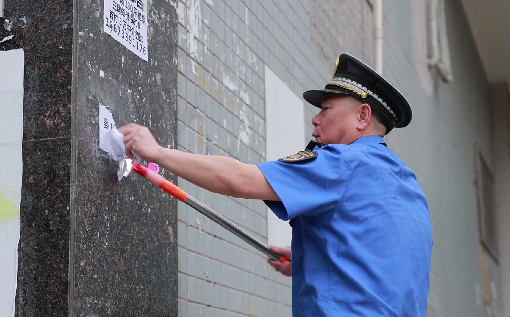 为什么要每天提早2个小时上班?龙文说一方面是因为自己平时习惯早起,“也因为红旗广场地段人流量比较大,牛皮癣特别有碍市容,我会提前清理下牛皮癣,想让大家在干净整洁的市容环境中,开始一天的工作。”