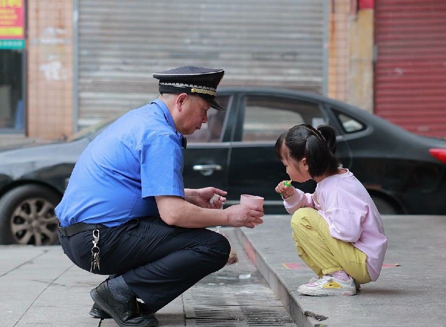 像往常一样,龙文每天清理完牛皮癣后,早上7点30分,会来到永红超市,接送“小孙女”芳芳上学。原来超市老板忙于生意,小朋友上学没人接送,她向龙文求助,在做好本职工作的前提下,龙文坚持送芳芳上学3年多了,龙文跟芳芳的关系就像爷孙一样亲近。