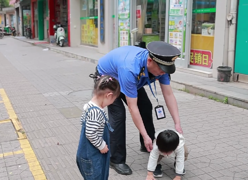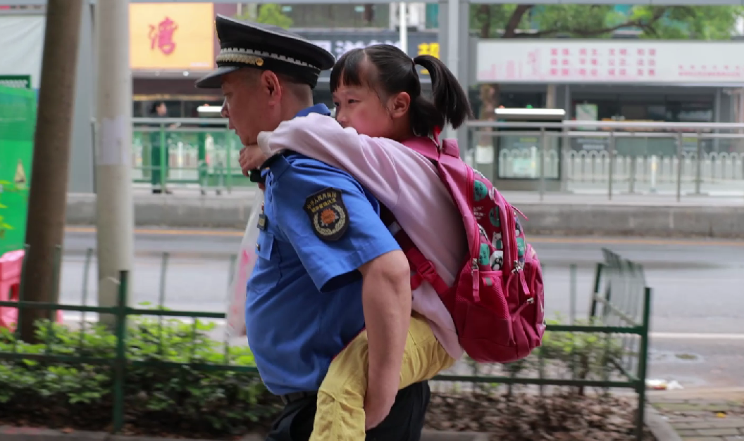 今年2月,龙文执勤行至长寿路附近时,发现两个小孩在马路边的一台车前趴着玩耍,小女孩身子一半钻入了车底,而车子里有人正在睡觉,万一车子启动,后果不堪设想,他迅速跑过去把小女孩从车底拉了岀来,并一路找寻孩子父母,最终将孩子交给了家人。