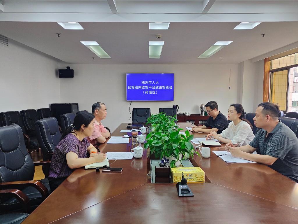 5月27日,株洲市人大财经委副主任委员、常委会预工委副主任宋慧玲一行到荷塘区人大常委会督查预算联网审查监督平台建设工作,区人大常委会党组副书记、副主任丁国祥,区人大财经委主任委员李剑参加座谈。