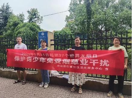 为切实做好控烟工作,大力开展爱国卫生运动,进一步营造良好的控烟禁烟氛围,塑造一个健康、整洁无烟的社区大环境,在第37个世界无烟日到来之际,宋家桥街道医疗协会组织志愿者服务团队,在辖区内开展以“保护青少年免受烟草危害”为主题的控烟宣传服务活动。
