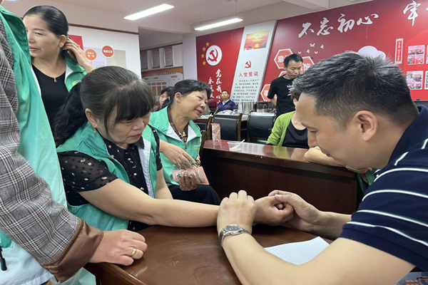 讲座结束后,居民们排着队把脉问诊。刘智辉医生根据把脉的体质,开出了中药方子,还有的居民在轮着享受免费艾灸按摩,测量血液各项指标,测血压血糖,根据体质免费贴敷膏药。