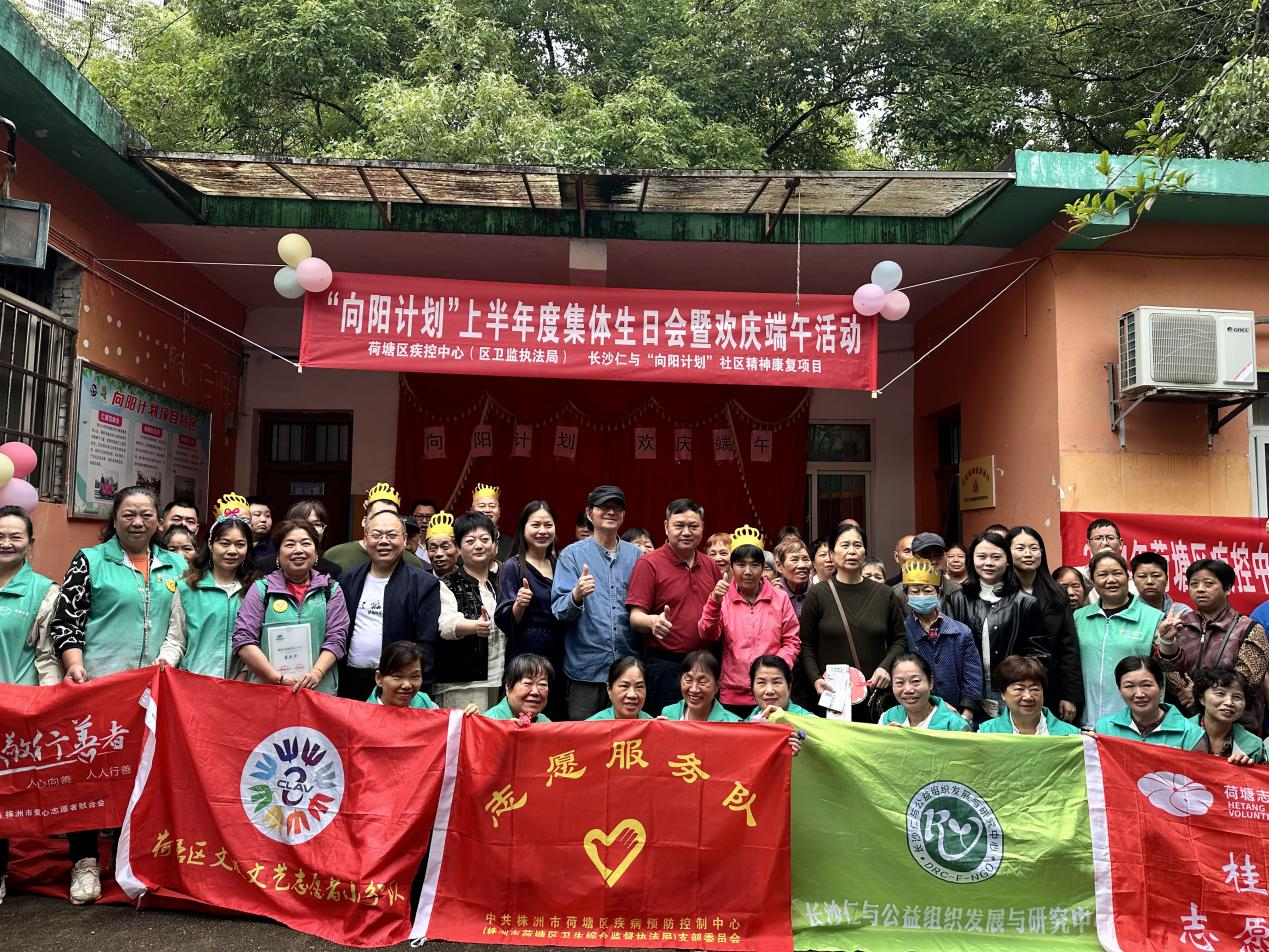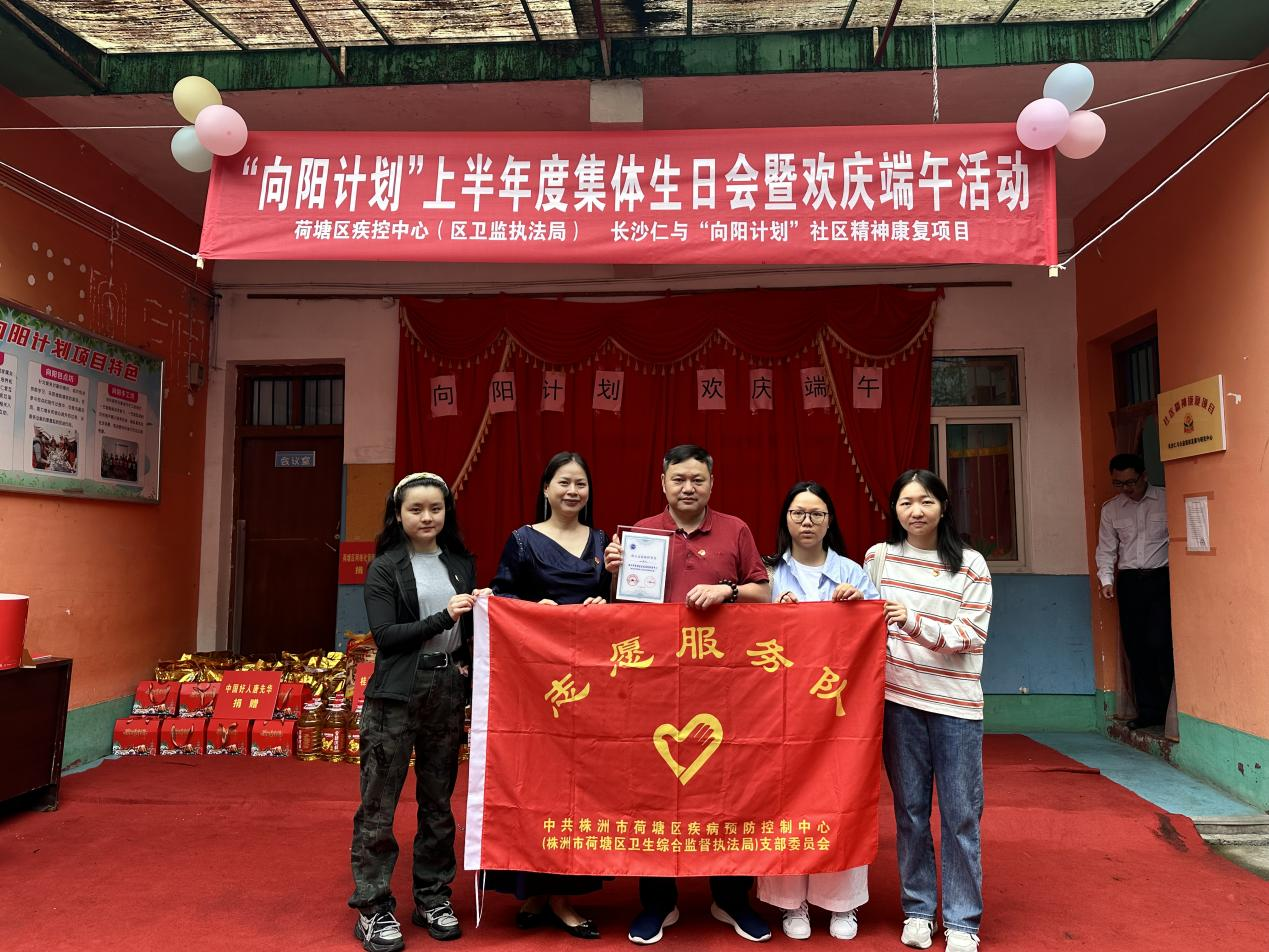 6月5日,荷塘区桂花街道“向阳之家”热闹非凡,“向阳计划”上半年度集体生日会暨欢庆端午活动在此举行。荷塘区疾控中心(区卫监执法局)党支部联合长沙仁与公益组织及湖南继丰食品有限公司等爱心企业举办此次活动,吸引“向阳计划”项目服务对象及家属、附近居民群众、志愿者、社工等近百人共同庆祝这一温馨时刻。