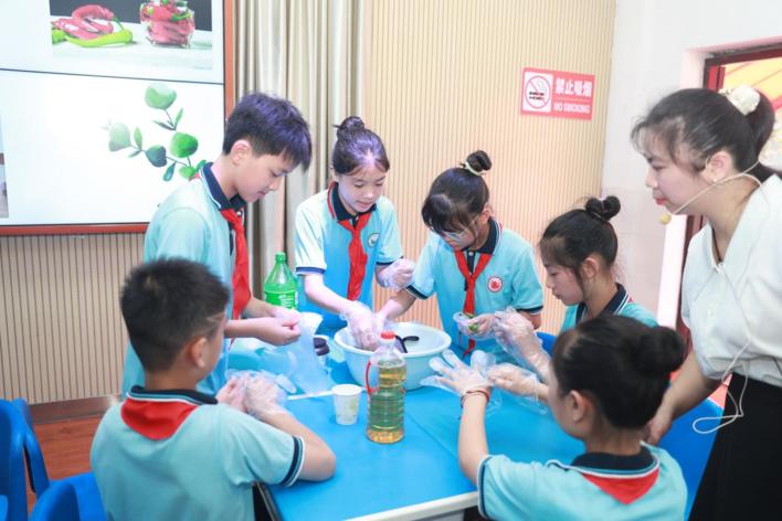 再如美的学校,从"探究实践""思维态度""自然美好""社会责任"四个纬度出发,充分利用"开心农场""屋顶花园""教室绿植培护区""亲子植物角"种植场所,开展形式多样、品类丰富的种植实践活动。活动中融合科学、语文、劳动、美术等学科要素,促进德育、智育、体育、美育和劳动教育的有机结合,促进了学生全面发展。