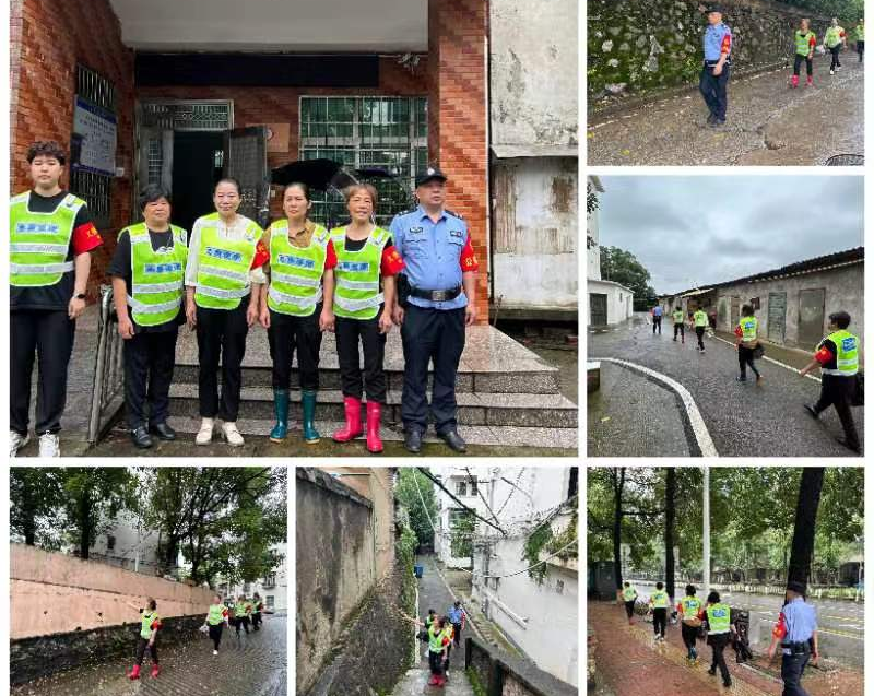 【图七】志愿者联合社区民警自发组织雨中巡逻,排查隐患