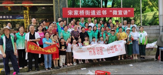 宋家桥街道每月一次举办“宋家邻里公益集市”,本次已是第11期。像往常一样,由爱心单位和近邻管家志愿者团队组织举办,共提供了15个义卖摊位和5个免费公益服务摊位,义卖收益用来帮扶困难群众。集市上,志愿者团队在义卖爱心蔬菜基地种植的蔬菜和瓜果;四三零幼儿园的“小摊主”们在家长的引导下体验生活,义卖玩具和手工艺品;义剪志愿者为老人家义务理发,医卫人员为提供免费量血压、测血糖等健康咨询和专业健康指导,让居民们在“家门口”就能享受到便捷服务……