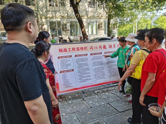 在现场,来自月桂社区的党员和近邻管家志愿者们化身“宣讲员”,向居民们宣讲党的二十大精神,并通过展板、宣传册等形式向居民宣传统战民宗、反电诈、禁毒教育、未成年人保护(“利剑护蕾”)及防溺水安全等相关内容。