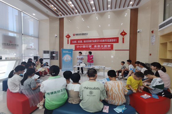 为了丰富明照街道青少年儿童的暑期生活体验,增强青少年儿童对现代金融体系的认知与理解,促进金融常识普及与提升,预防青少年金融网络诈骗。7月30日,明照街道携手株洲农商行仙庾支行组织开展“小小银行家·未来大赢家”社会实践活动。