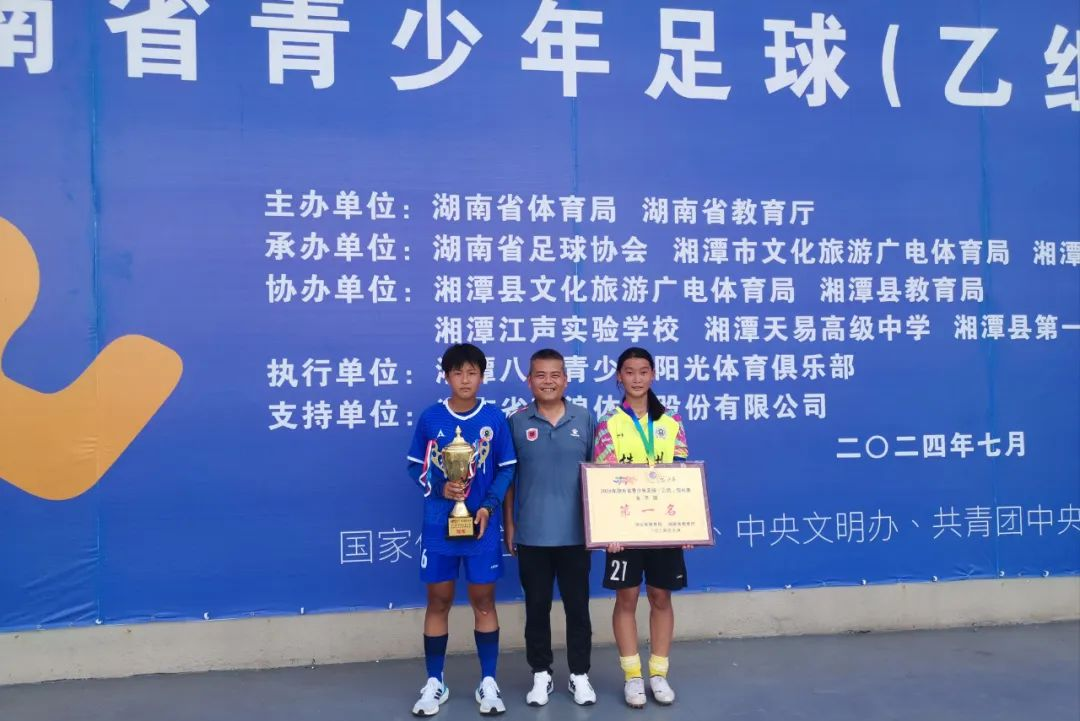 8月2日上午,由省体育局、省教育厅主办的“奔跑吧·少年”2024年湖南省青少年足球锦标赛(女子乙组)落下帷幕,株洲八达中学(四中初中部)女子足球队代表株洲市一队一路过关斩将勇夺冠军!参赛女足队员分别有:龙家乐、马钰洁、徐清妍、梁珂怡、唐艺琴、曾妍妍、周子萱、宋紫微、黄子怡、易腾玉、尹语晨、朱可欣、杨玥、肖伊玲、康楚婷、余梦涵、凌麒睿。其中,八达中学(四中初中部)2207班朱可欣和2307班肖伊玲荣获本次赛事体育道德风尚奖。
